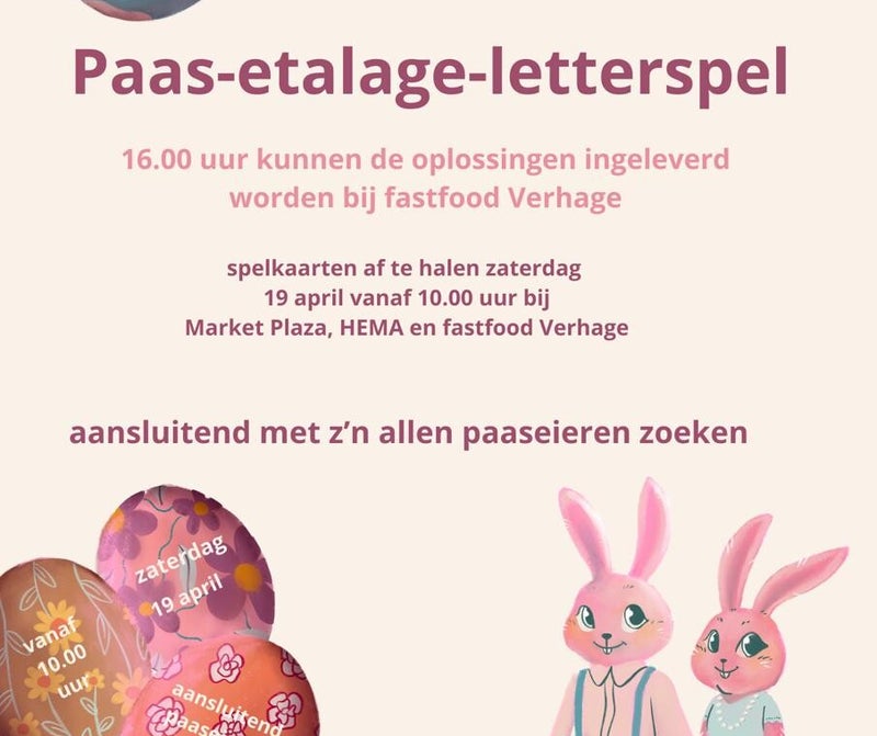 De letter speurtocht zo rond Pasen was is groot succes. de kinderen en hun begeleiders zoeken letters in de etalages van de deelnemende ondernemers op het dorp. Deze vormen een slagzin! Dankzij onze sponsoren is er taart en paaseieren voor de deelnemers! Die moeten wel eerst gezocht worden!